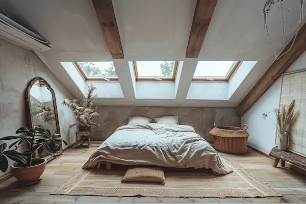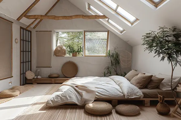 Look 7: Japandi Bedroom – Soft Light & Serene Simplicity Under the Skylights