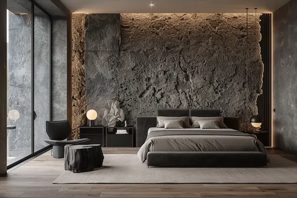 | Textured Wall Panels or Headboard Accent For sculptural, stone-like wall texture: Use custom faux-concrete 3D wall panels or opt for a large stone-look tile. (Local hardware/lumber yards typically carry these.)  | Shop the look |