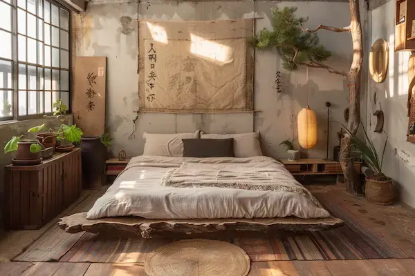 Look 5: Japandi Bedroom – Rustic Calm with Vintage Charm