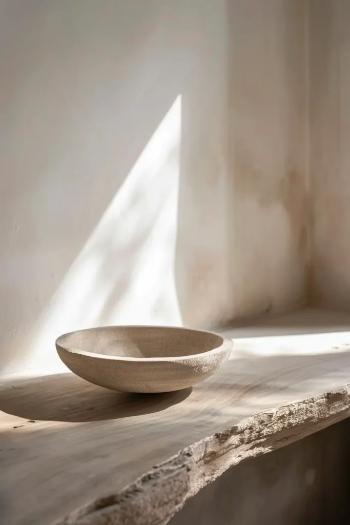 Handcrafted ceramic bowls or vessels are one of the few objects that can exist on their own within Crafted Minimalism. Their value lies not in decoration, but in material presence. Subtle asymmetry, uneven glazing, and hand-shaped edges create texture that feels human rather than styled.