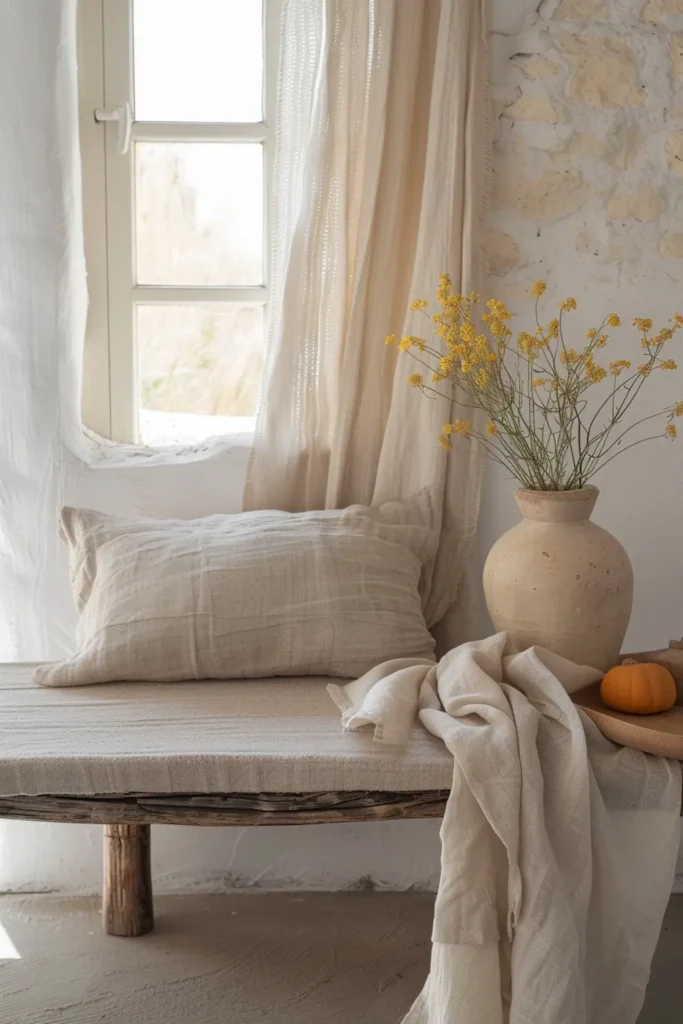 Within Crafted Minimalism, these textiles work best when used in functional roles: upholstery, a single throw, or a wall-hung textile used sparingly. Linen, wool, and cotton absorb light instead of reflecting it, which softens a space without adding layers.