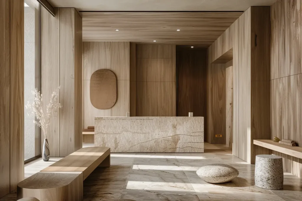 Stone-only interiors create the opposite effect. Their stillness and density can feel grounding, but when stone dominates without softer elements, the space risks becoming distant or emotionally cool. Even when colors are neutral, too much stone can feel heavy and unyielding, especially in daily living environments.
