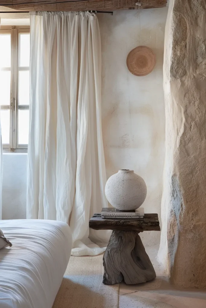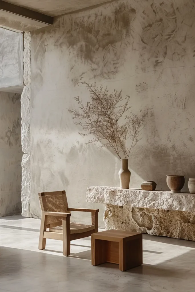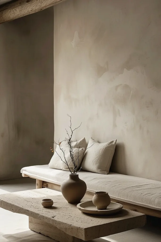 Another key difference lies in restraint. Traditional Wabi-Sabi interiors can feel layered, intuitive, and emotionally rich, but they may also drift toward visual density if not carefully balanced. Crafted Minimalism reduces this risk by limiting objects and emphasizing material presence over symbolic meaning.